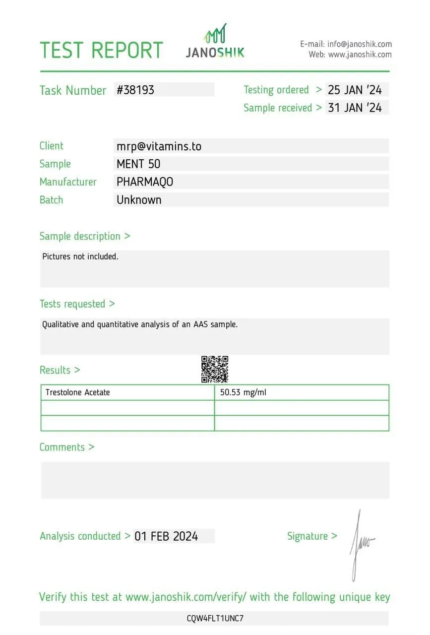 At Pharmaqo Labs Shop, we provide only authentic, lab-tested formulations to ensure safety, quality, and consistency. Our MENT 50mg is produced under strict Pharmaqo Labs standards, ensuring athletes get the purity and potency they need for world-class results.